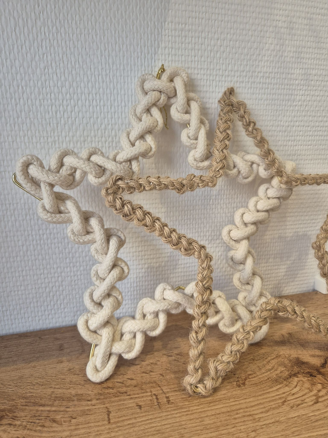 Apportez une touche bohème et artisanale à votre intérieur avec cette étoile décorative entièrement faite à la main en coton blanc. Chaque pièce est unique, idéale pour décorer un mur, une étagère ou un coin cosy de votre maison.